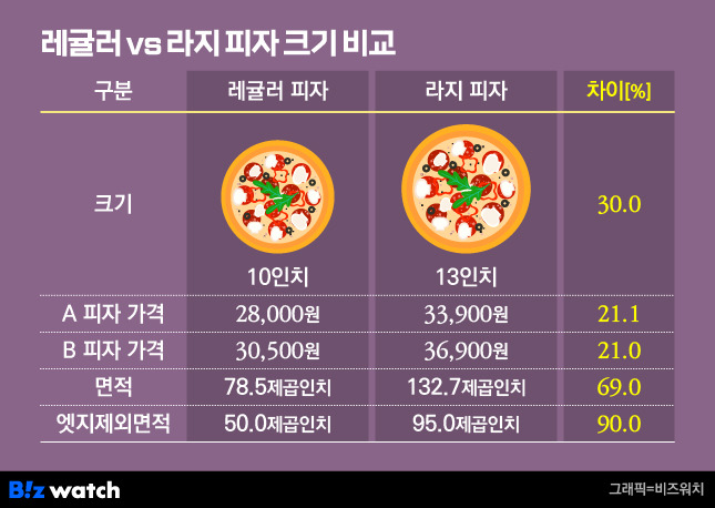 레귤러 VS 라지 피자 가성비는??