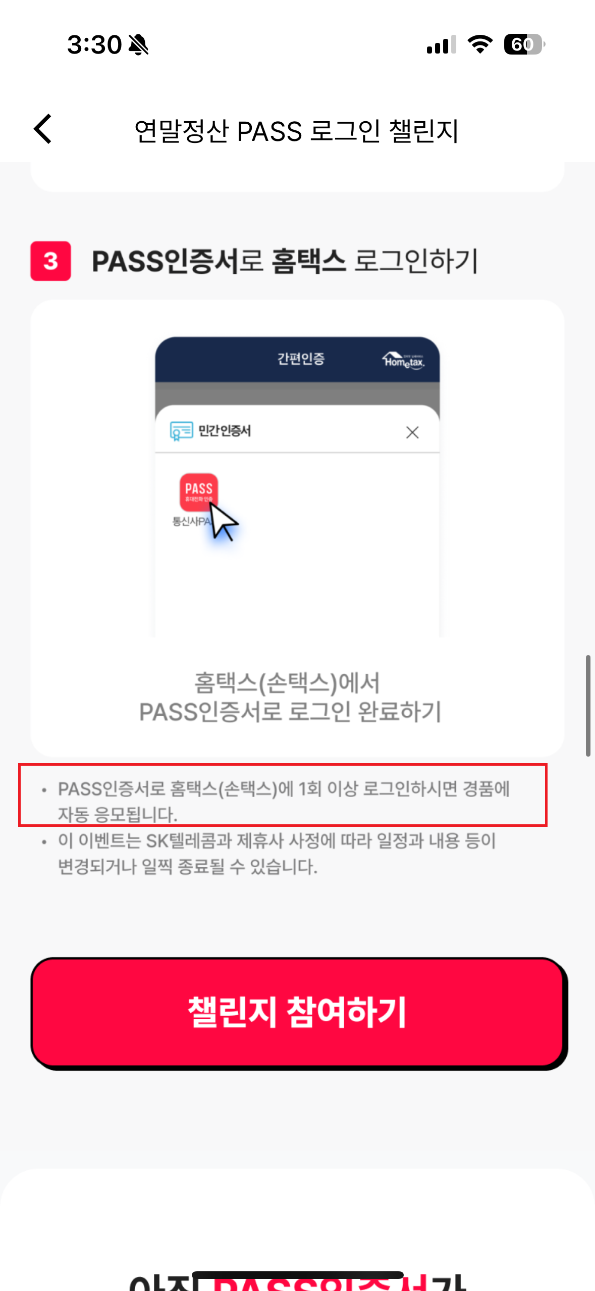 연말정산 PASS 로그인 챌린지 이벤트 with SKT