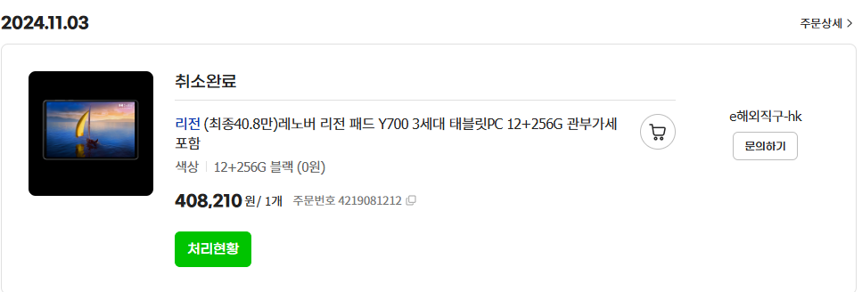 ---- 11/6 추가 ----G마켓 빅세일로 432,000원은 취소 하고 40.8으로 다시 결제!! 비슷한 상황이긴 한데 뭐!! 제대로 오면 싸게 사는거니깐!! https://algo79.tistory.com/1915 레노버 리전 Y700 3세대 출시레노버