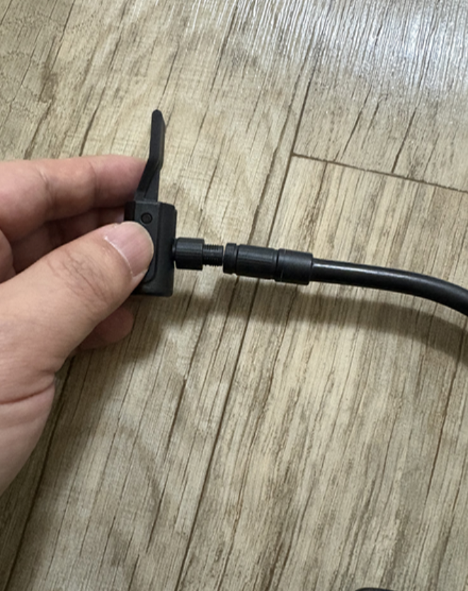 타이어에 연결하고 꼽고 끝부분을 돌려주면 잠긴다.