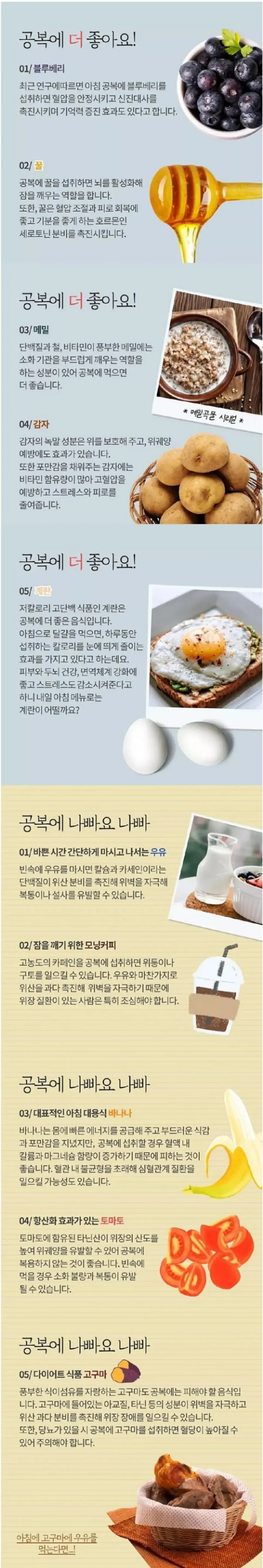 공복에 좋은 음식과 나쁜음식이 있다. 뭐 솔직히 자주 먹지 않는다면 문제가 없겠지만 그래도 혹시 모르니 주의 하자.
