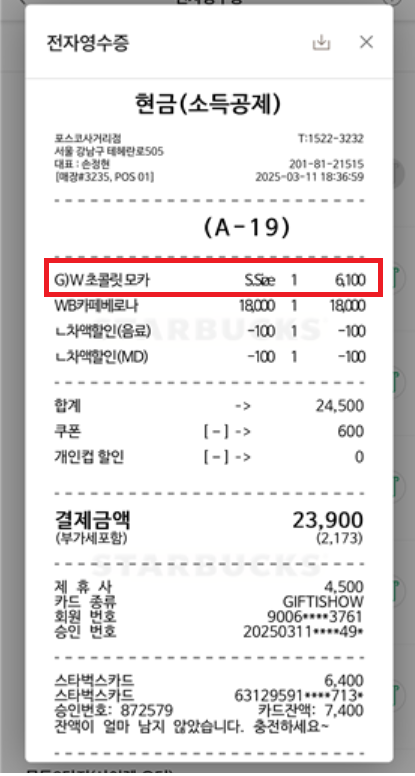 1천원 이상 스벅카드로 결제를 6번 하면 사이즈업 쿠폰을 받는다.