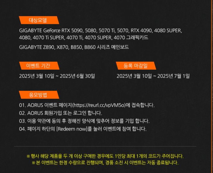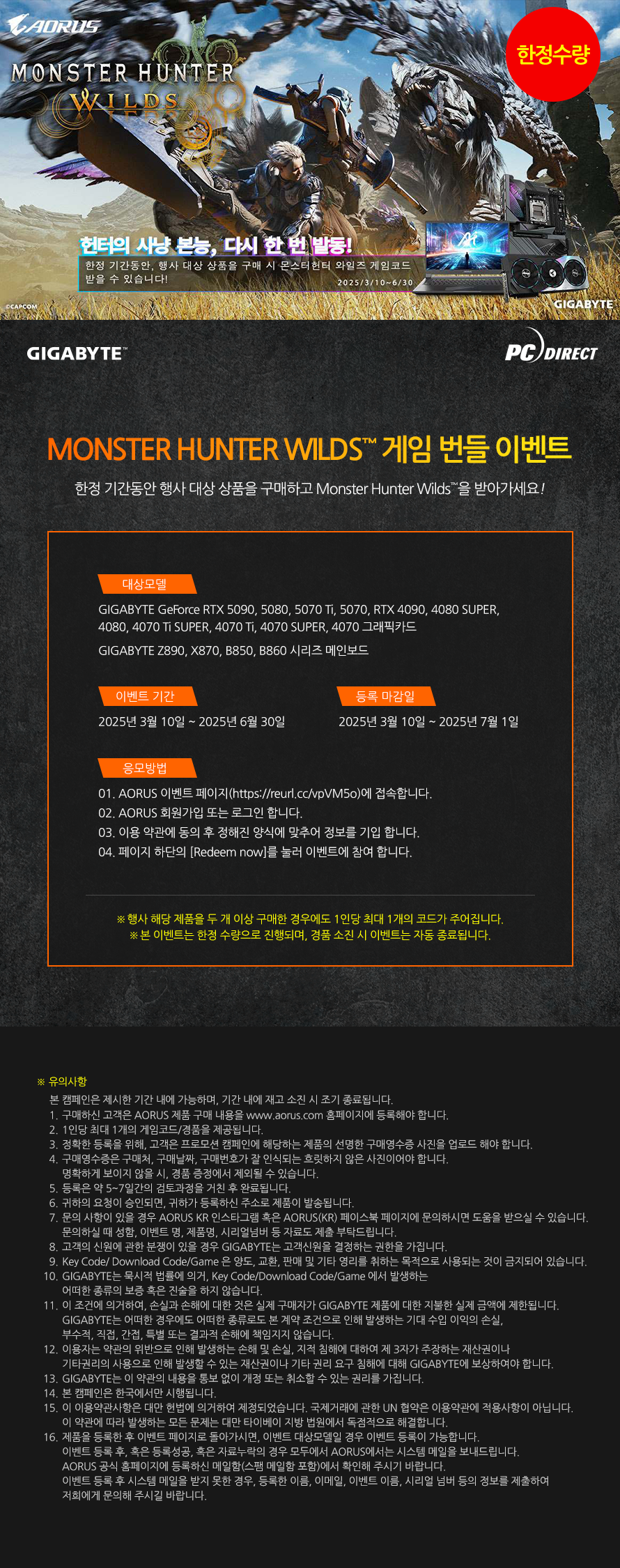 GIGABYTE 제품 구매시 몬스터헌터 와일즈 게임코드 지급 이벤트!!