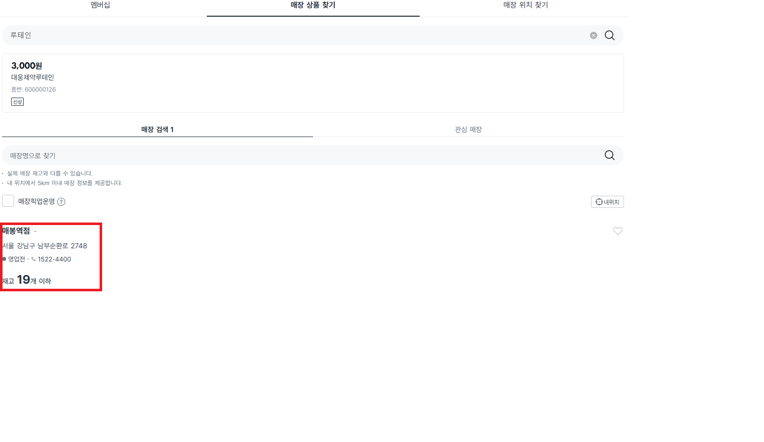 그럼 위와 같이 있는 매장이 나온다. 이제 가서 없네? 헛걸음 안해도 된다.