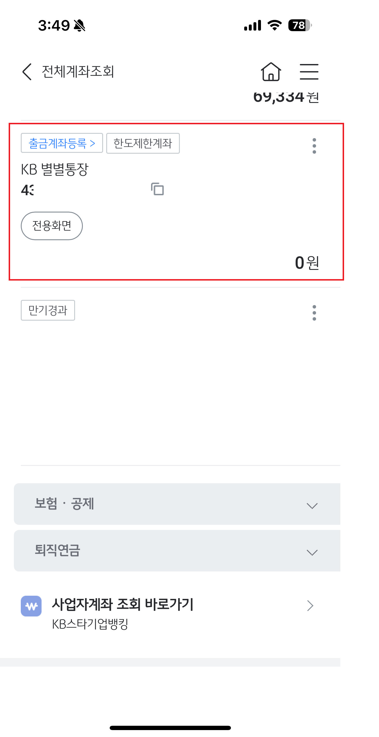 메인화면에 전체 메뉴에 조회 - 전체계좌조회 들어가자.