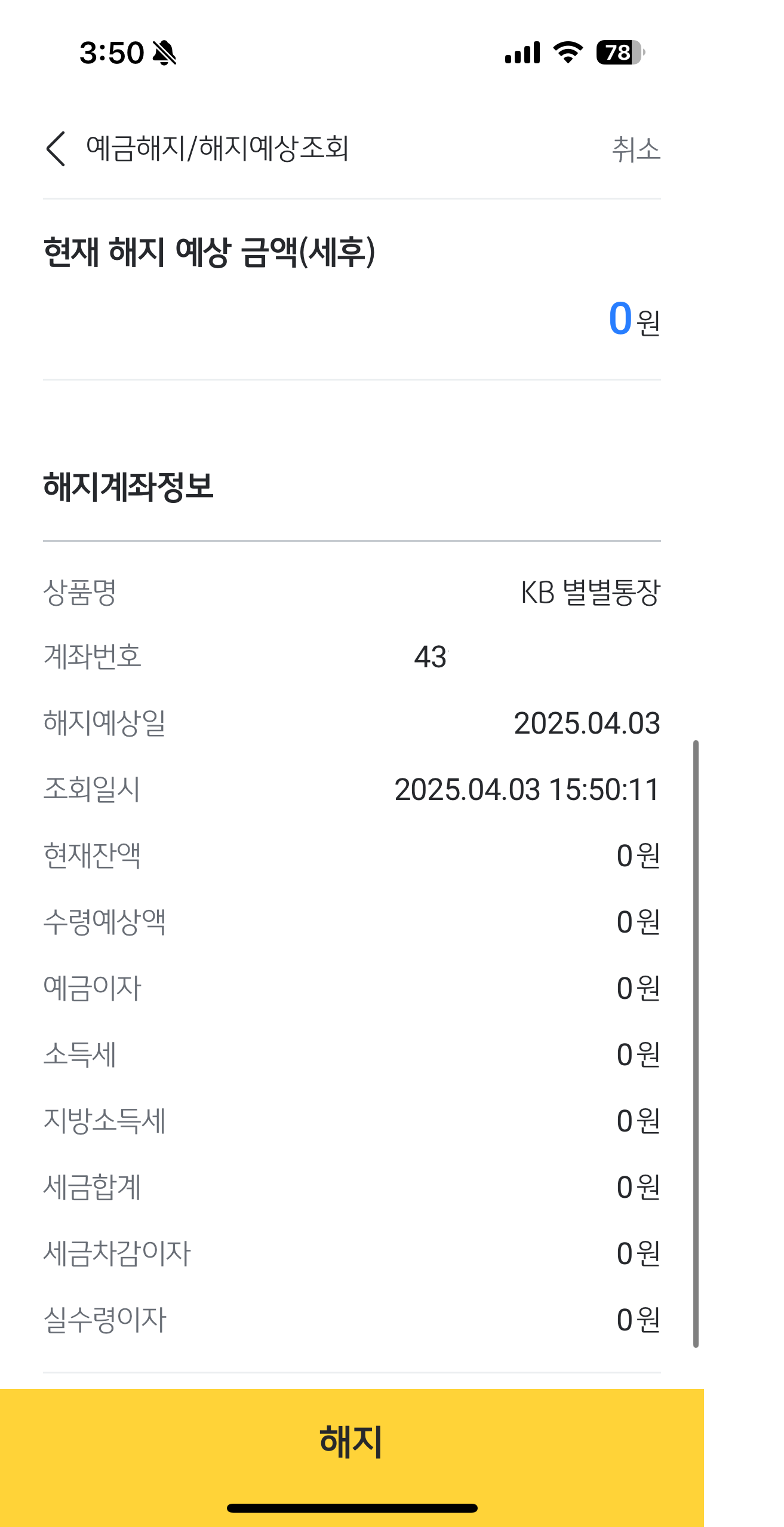 마지막으로 인증 한번 받고 해지 누르면 해지가 완료 된다.! 이런 삽질을 하지 않으려면 이벤트를 잘 보고 진행하자~