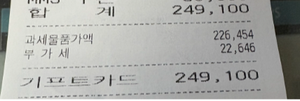 249,100원이 나왔다 그런데 기프트카드를 썼다.