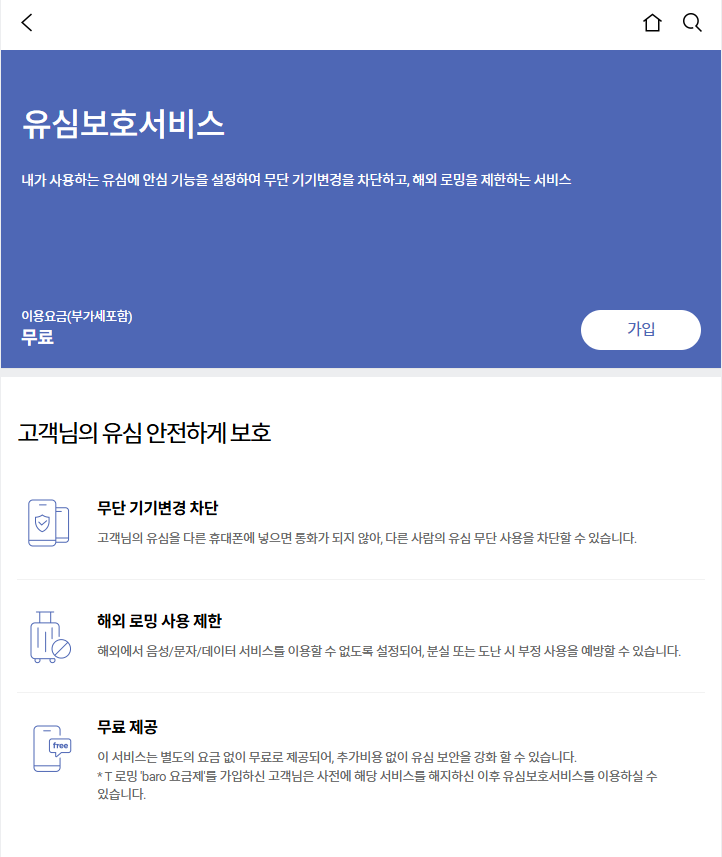 위 링크 가면 가볍게 가입이 된다. 단점은 가입한 상태로는 로밍이 안된다고 하니 해와 나가는 사람은 해지 후 로밍 사용하고 한국에 다시 돌아와서 유심보호서비스를 다시 가입을 해야 한다.