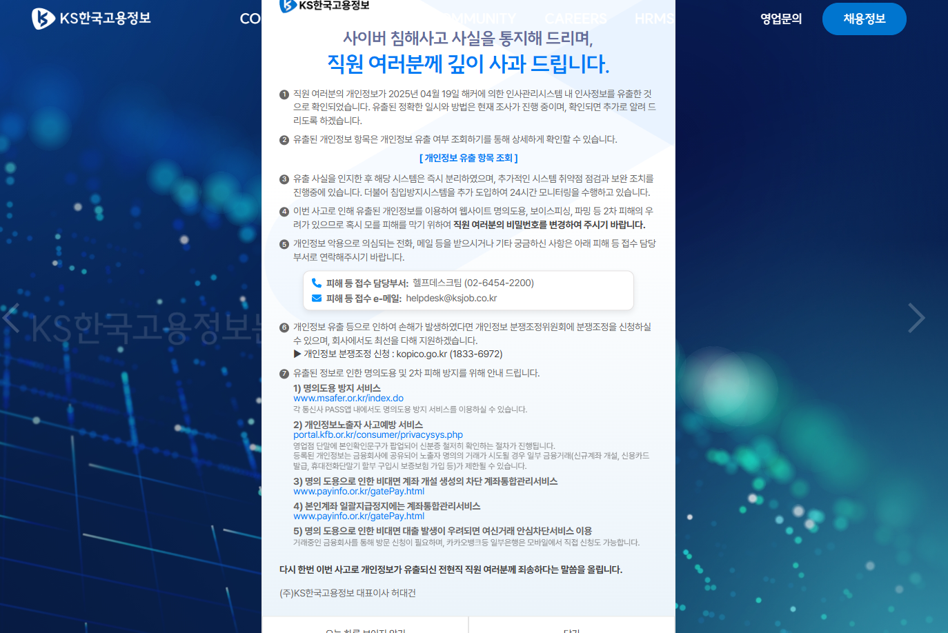 여튼 KS한국고용정보 회사 털린 내용이 어마 어마하다.