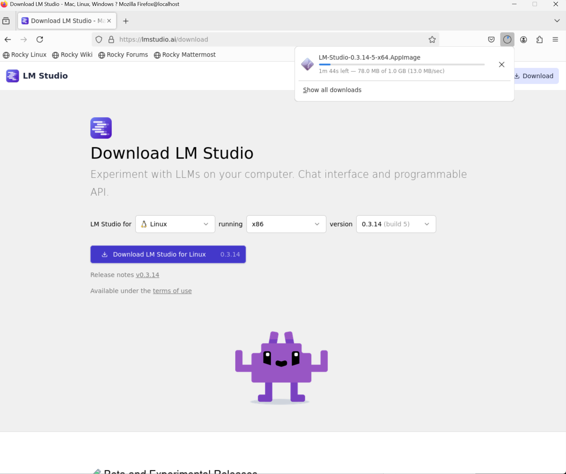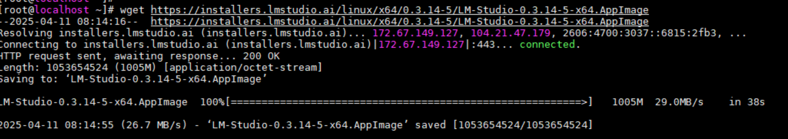 # wget https://installers.lmstudio.ai/linux/x64/0.3.14-5/LM-Studio-0.3.14-5-x64.AppImage