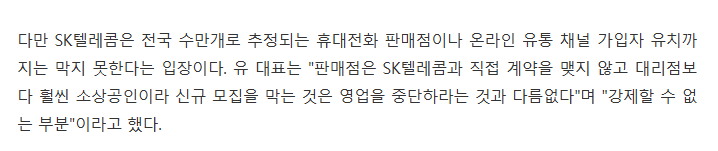 그러니 SKT가 모든 원인이니 영업손실 보전을 해줘야 하지 않을까 싶다.