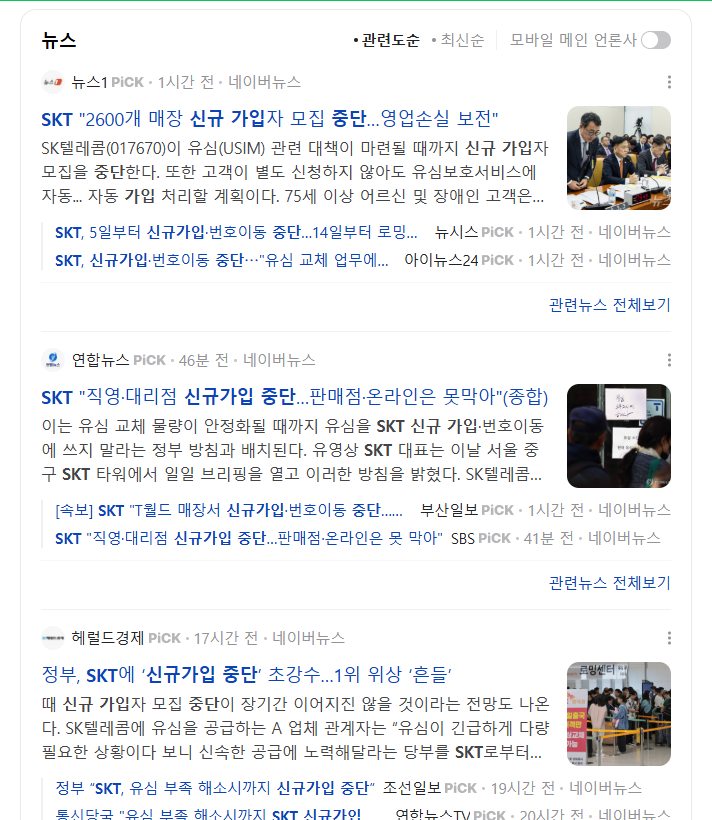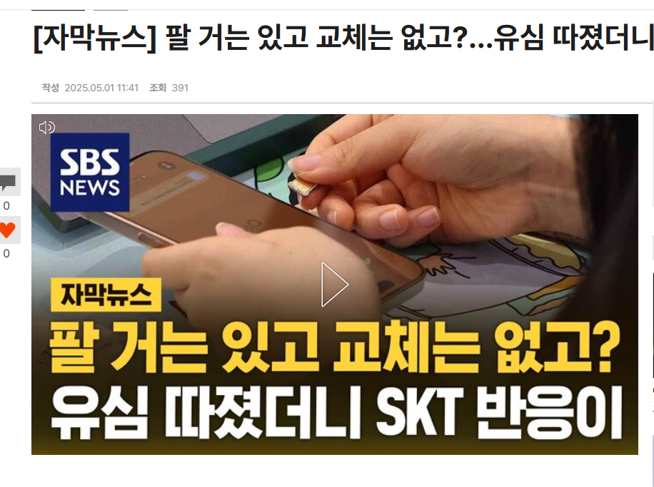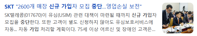 나도 SKT 쓰는데.... 다른 통신사로 넘어가야 겠다. KT,LG도 그나물에 그밥인 한데 걱정이다.