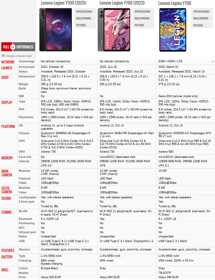 중국에서 5/8일 Y700 4세대를 발표 했다. 출시 가격은 3,299위안(638,356원(부가세x)), 국가 보조금을 받으면 2,804위안(542,574원(부가세x)이다 . 3세대보다 10만원 정도 더 비쌀듯 하다.