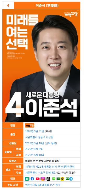 마지막으로 나처럼 궁금한 사람이 있을까 모르겠지만 대통령 선거에 단골로 나오던