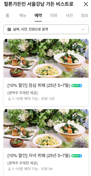 예약을 하려고 했는데 예약을 못하고 갔는데 예약 할때 물어보니 힐튼 호텔 가입자면 10프로 할인을 해준다고 한다.