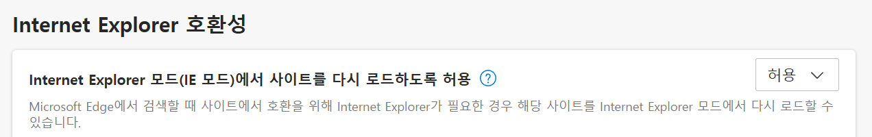 좌측에 기본 브라우저 선택 하면 internet explorer 호환성 메뉴가 뜨는데