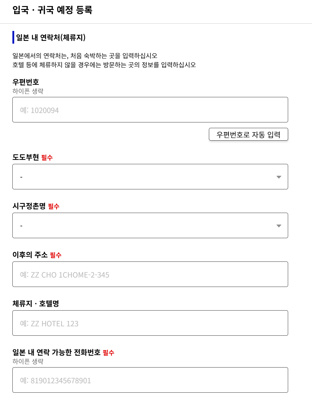 아래 보면 입국 귀국 예정 신규등록이 있으니 등록을 누르자