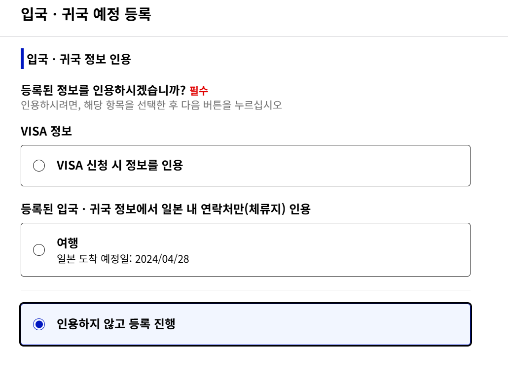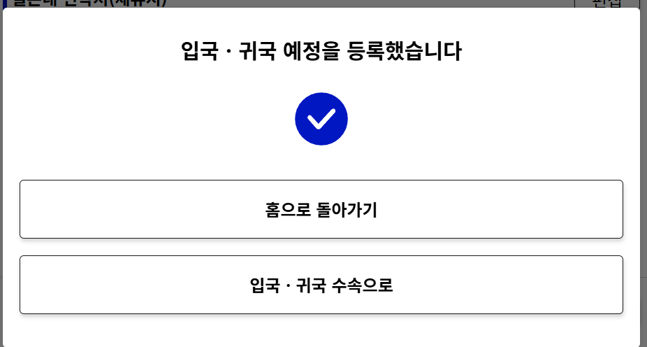 그럼 등록이 끝나고 입국 귀국 수속으로 눌러서