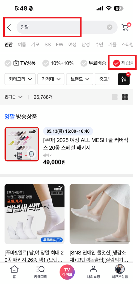 내가 구매 하고 싶은 제품을 검색 하고 옵션에 적립금사용 체크 하면 나온다. 양말.. 참 비싸다.