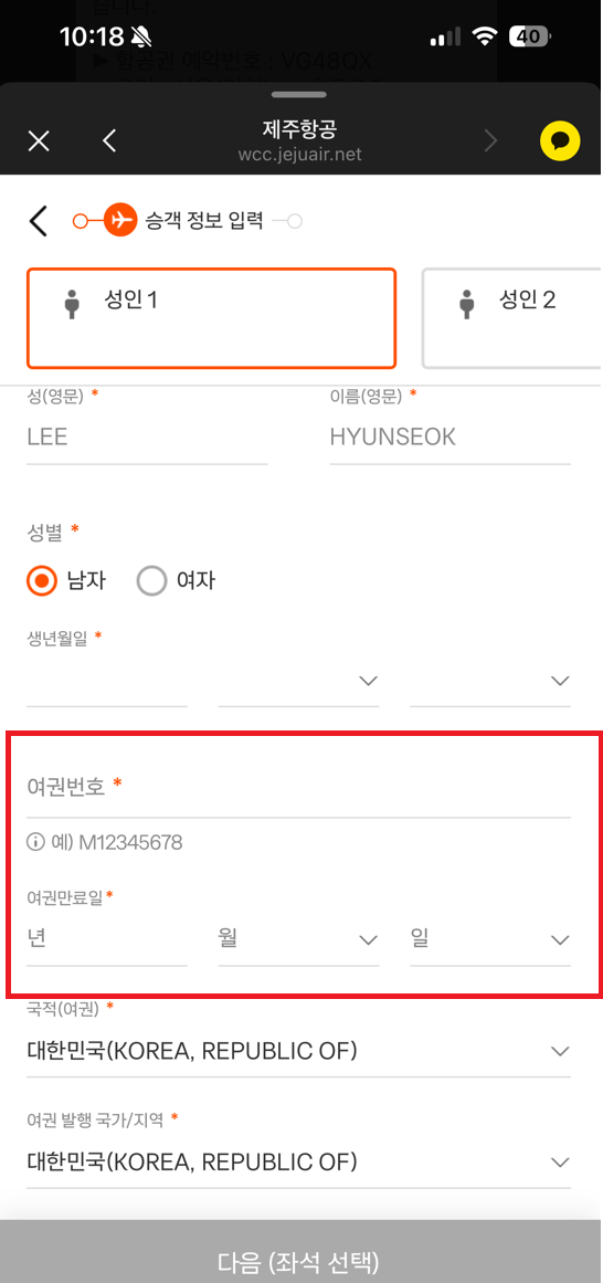 제주항공 항공권 예매 할때 여권번호를 입력을 하지 않는다. 괜히 찝찝하다 뭐지..? 언제 입력하지..?