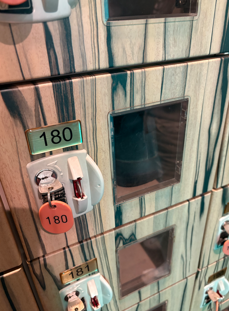 신발 벗고 들어가고 신발은 사물함에 넣으면 된다. 비용은 100엔이고 나올때 돌려 받는다.