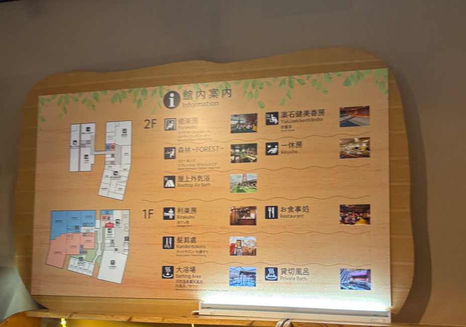 온천은 1,2층으로 구성되어 있고 가족탕도 있다고 한다.