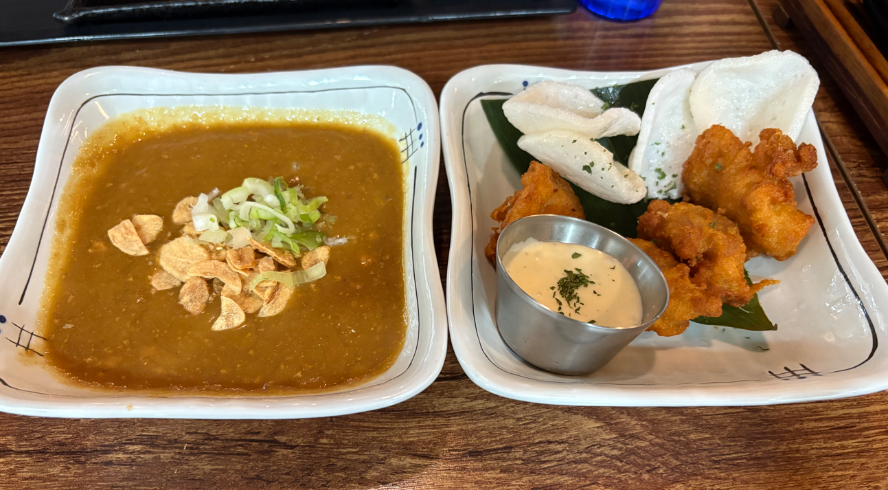 네이버 예약으로 나온 서비스 카레와 치킨이다.