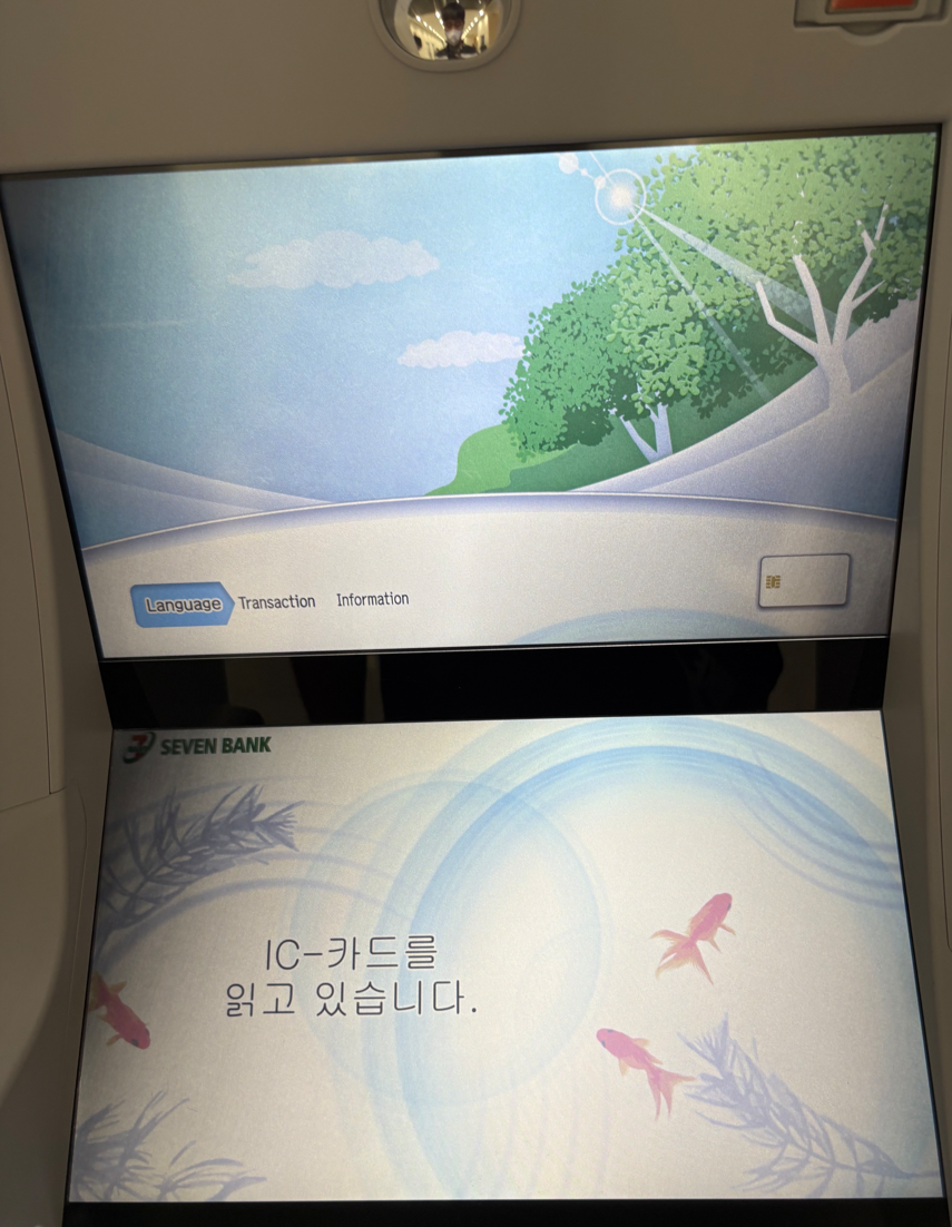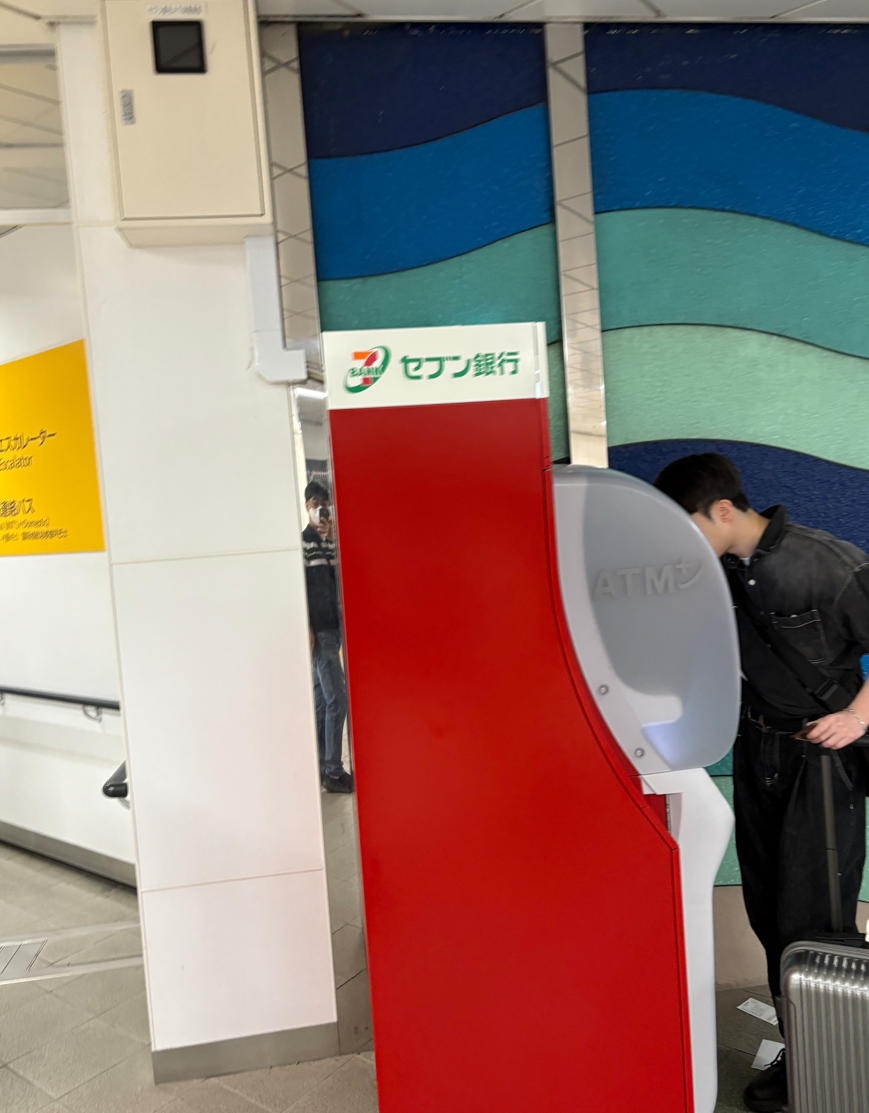 후쿠오카 공항에서 내리자 마자 오른쪽에 에스컬레이터 바로 아래에 세븐일레븐 ATM 기기가 있다. 아침 8시인데도 사람이 많다. ATM 기기는 총 2대다.