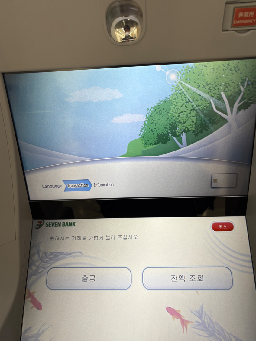 바로 세븐일레븐 ATM 기기가 있다. 사람이 거의 없으니 여기서 이용해도 된다.