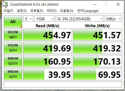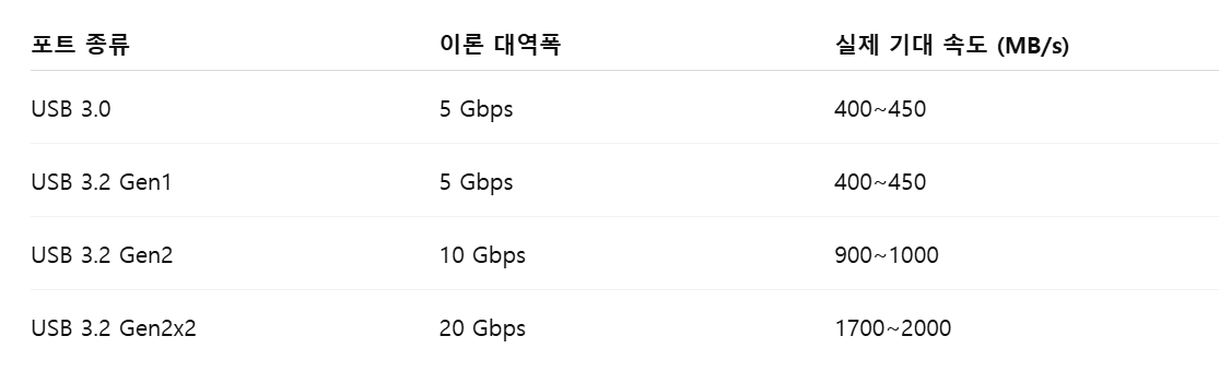 usb 버전에 따라 최대 속도가 다르다. 결국 이제품을 제대로 쓰려면 USB 3.2 gen2 이상인 PC에서만 사용 가능!