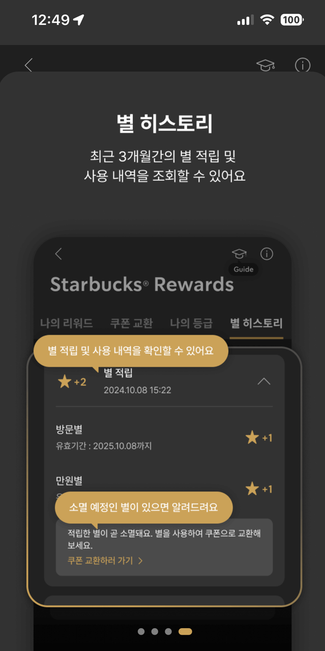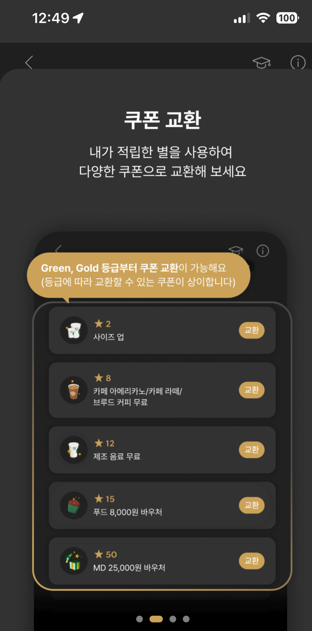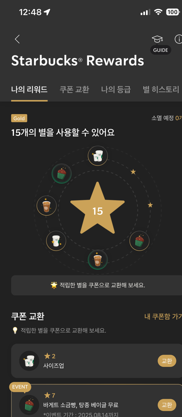 별 12개 혹은 8개 적립되면 자동으로 음료 쿠폰이 생성되는게 별 포인트로 자신이 원하는 제품으로 교환 하는 방식으로 변경된것이다.