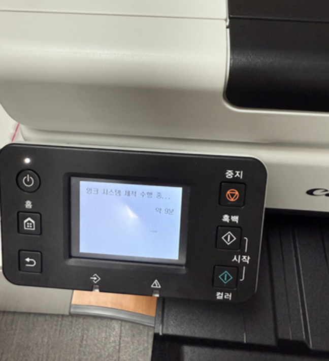 교체하고 잉크 시스템 세척을 다시 해주니 정상적으로 된다.