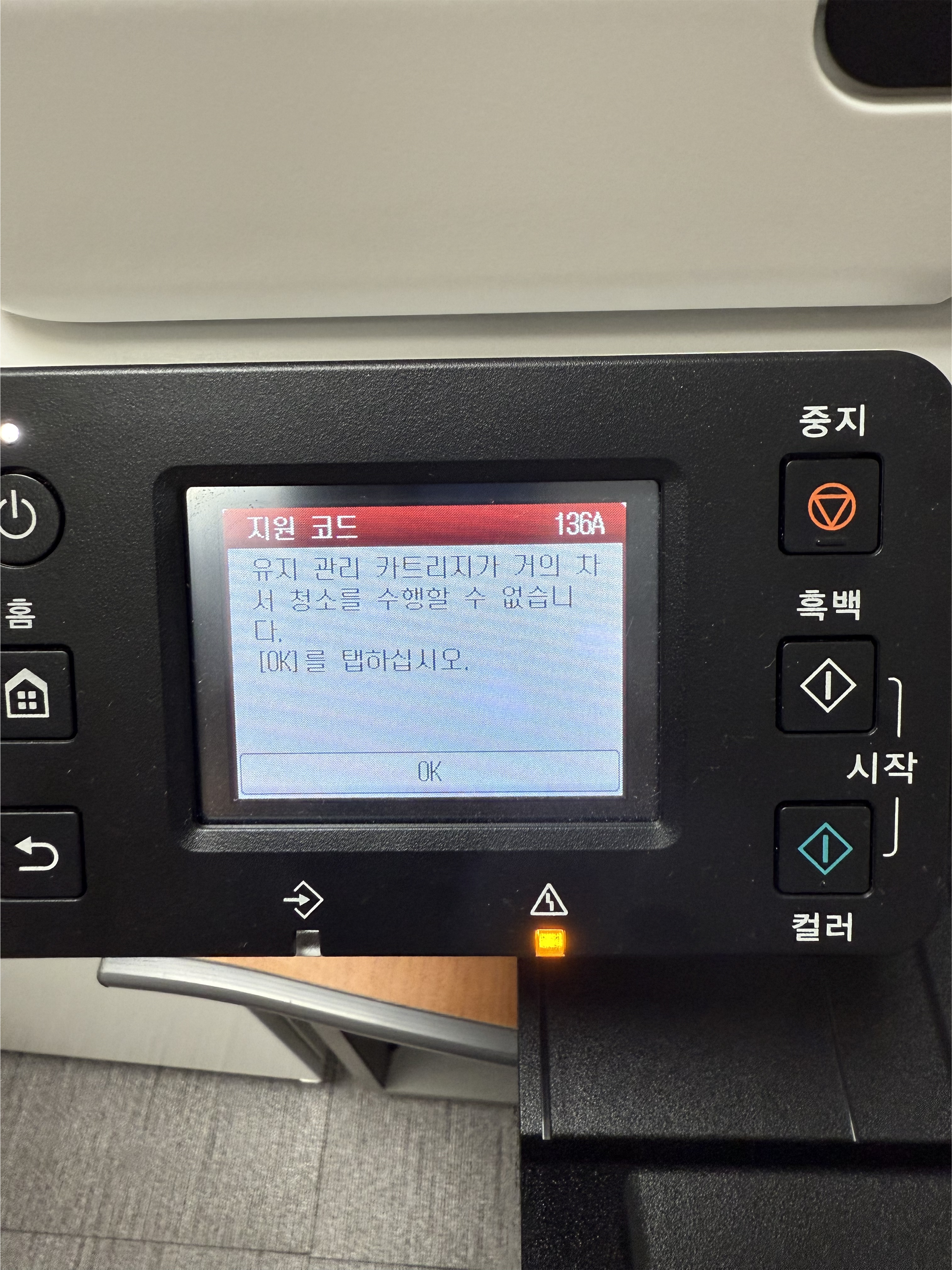 찾아보니 5b00 과 같은계열의 에러인듯 하다. 결국 유지 관리 카트리지를 교환해야 한다.