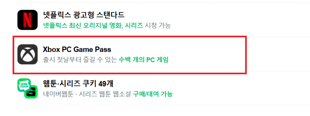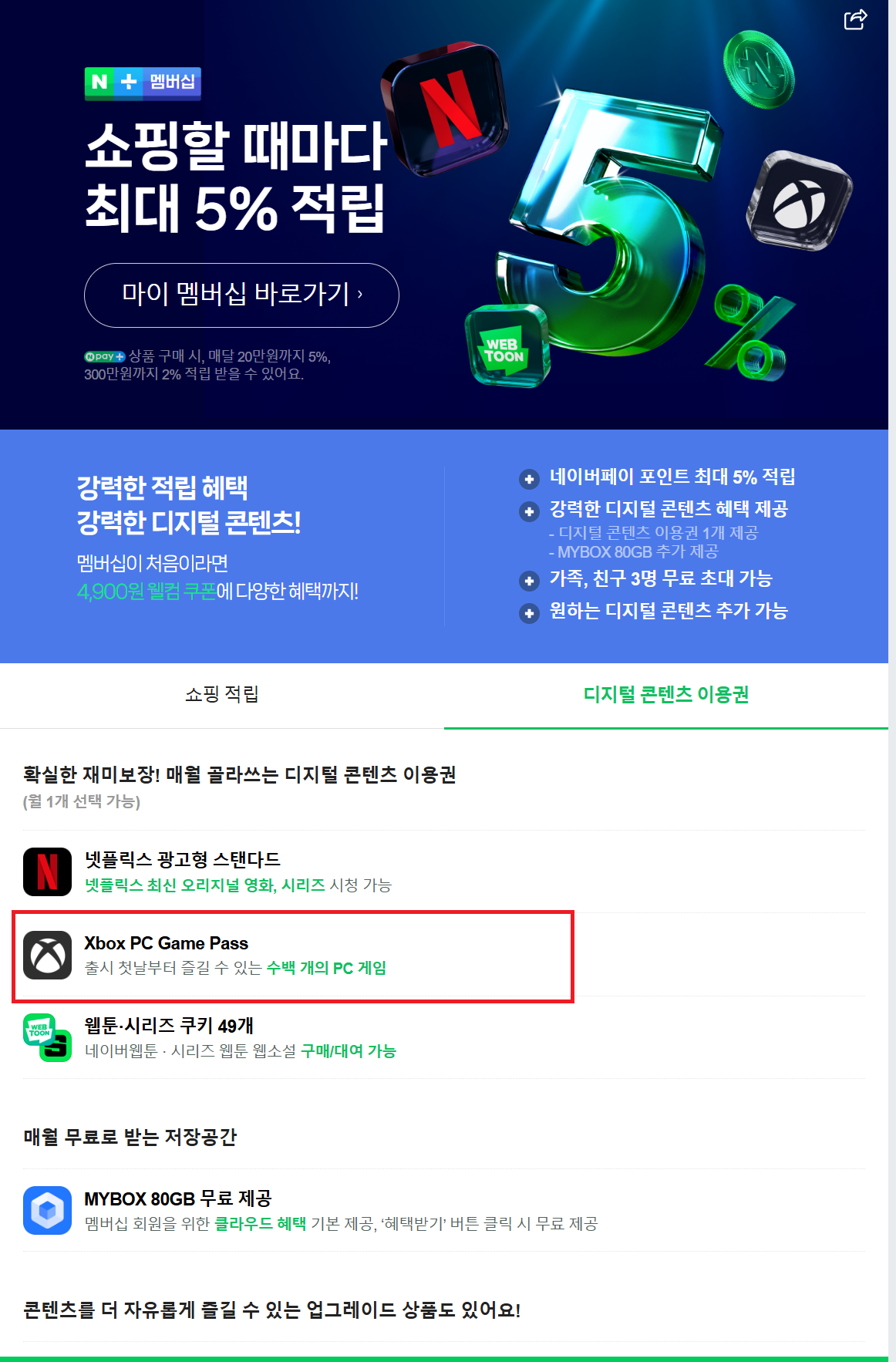 네이버플러스 멤버십 엑스박스 게임패스 추가