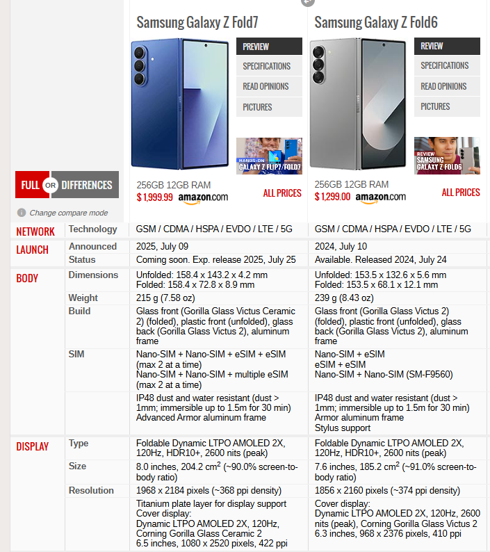 크게 변경점은 크기와 두깨다 6에 비해 엄청 얇아졌다. CPU는 스냅드래곤8 gen3 에서 엘리트로 변경되었다.