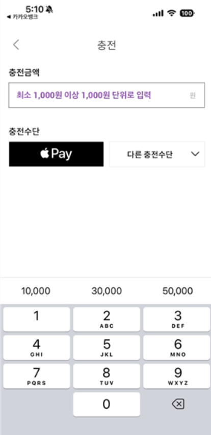 그럼 충전할수 있는 금액이 뜬다. 아이폰은 최소금액이 3,000원이고 모바일티머니는(최소 1,000원이다.)