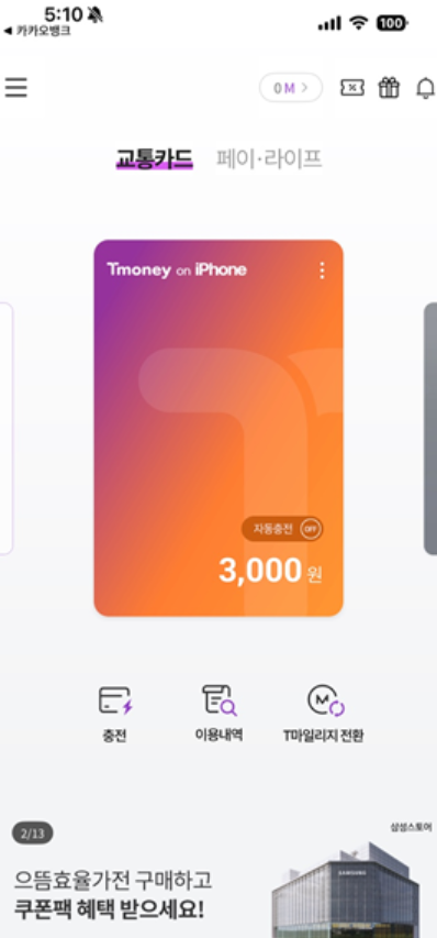 아이폰 티머니 교통카드 서비스 시작 충전방법