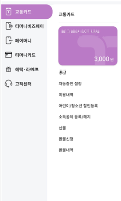 어린이/청소년 할인등록은 모바일티머니 앱에서 설정이 가능하다.