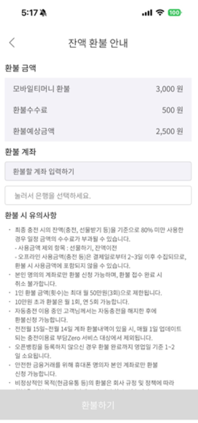 사용 안하면 환불도 되는데(모바일티머니어플) 환불수수료 500원이 나간다.