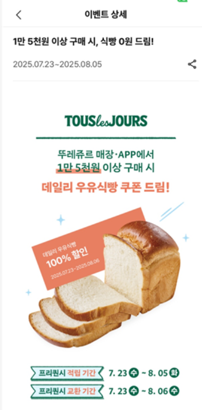 우유식빵은 8/5일까지 교환 하면 된다. 7월25일은 이미 끝났으니 8월 1일을 도전하자~