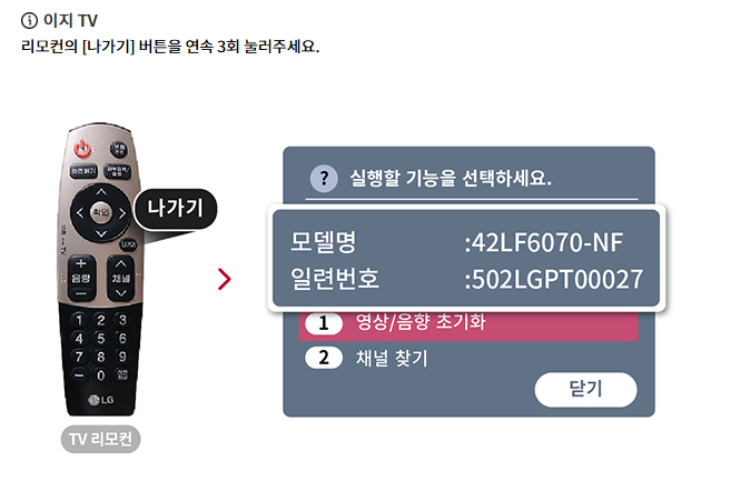TV 리모컨만 있으면 바로 확인이 가능하다.