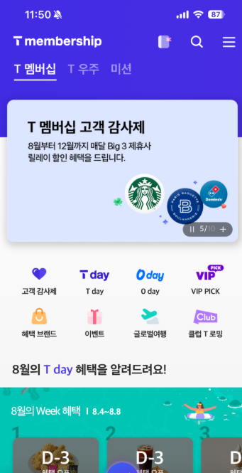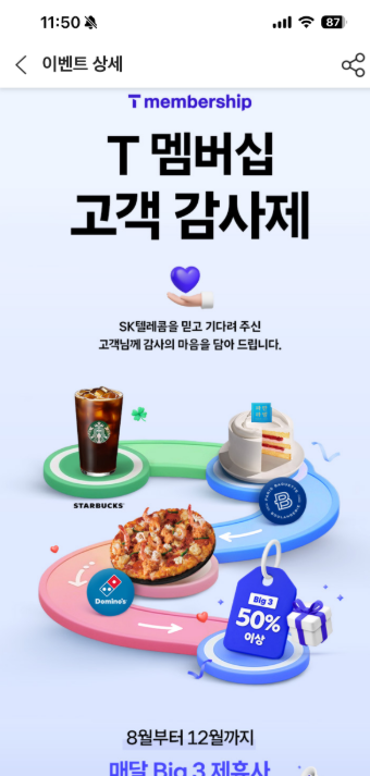 T 멤버십을 들어가면 이렇게 공지로 떠 있다.