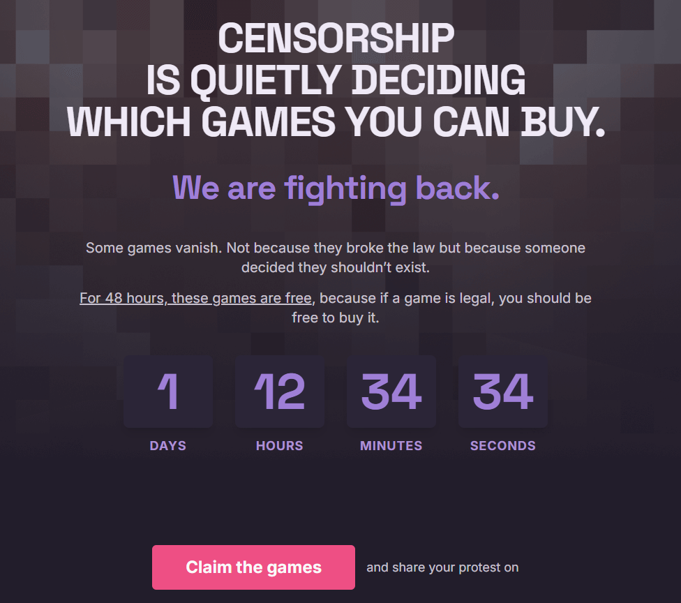 Some games vanish. Not because they broke the law but because someone decided they shouldn’t exist. For 48 hours, these games are free, because if a game is legal, you should be free to buy it.