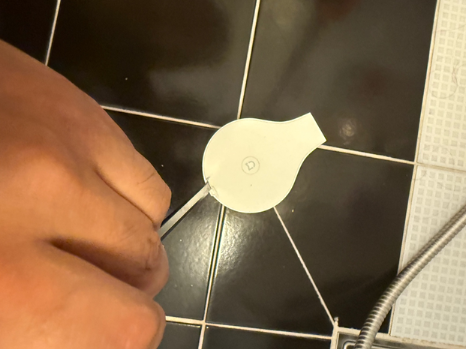 뜯기는 어려운데 드라이버로 이렇게 끝부분을 틈을 만들어서
