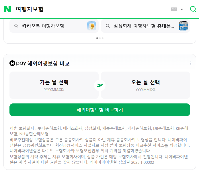 이전에 카카오나 트래블로로 여행자보험 가입을 했는데 네이버도 하고 있다 몰랐네