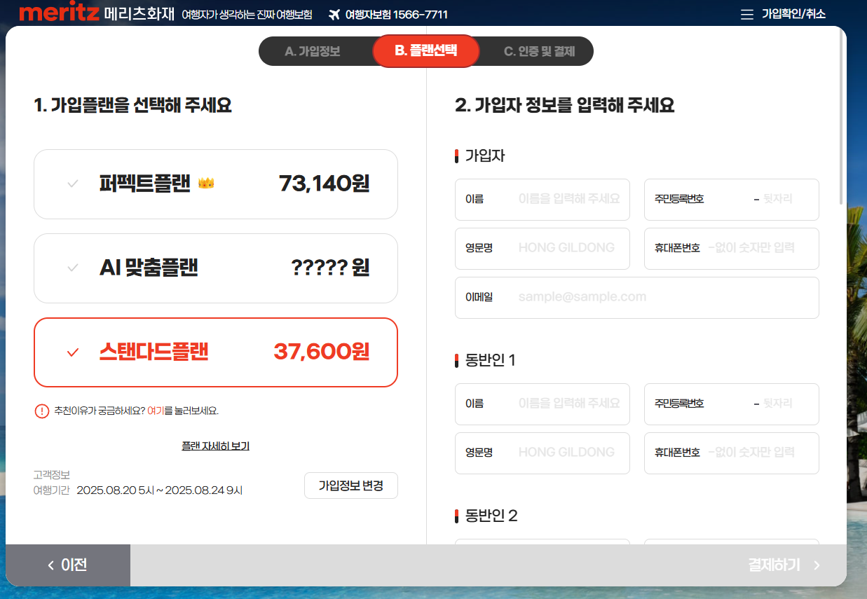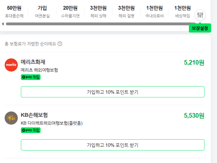 검색하는 방법은 간단하다 여행자보험으로 검색 하면 아래 뜬다.