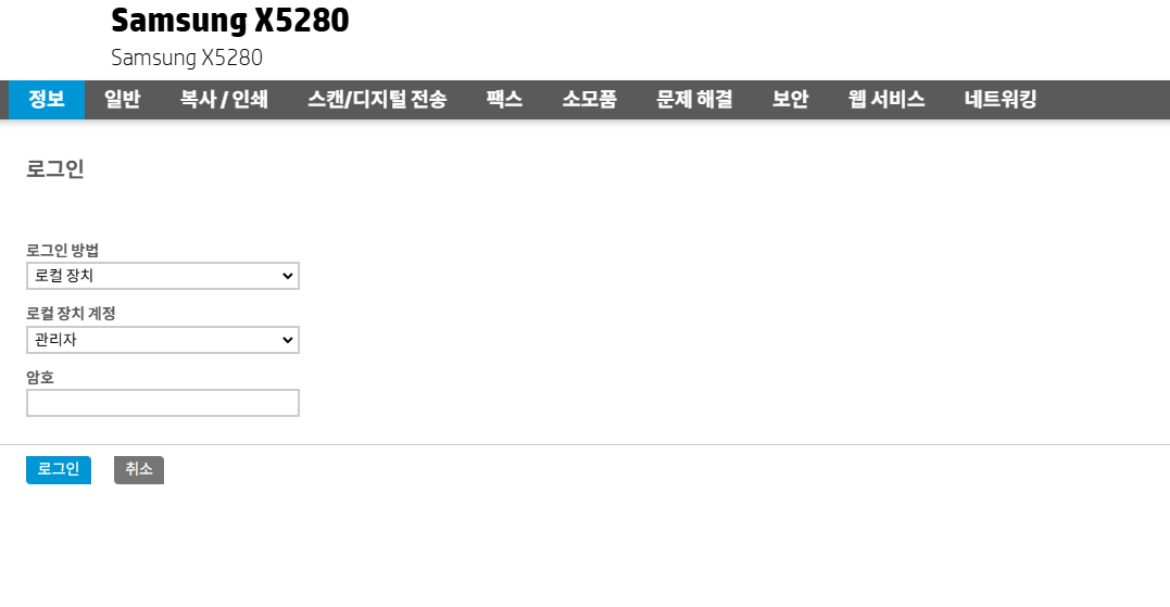 삼성 SL-X5280NR 초기 암호