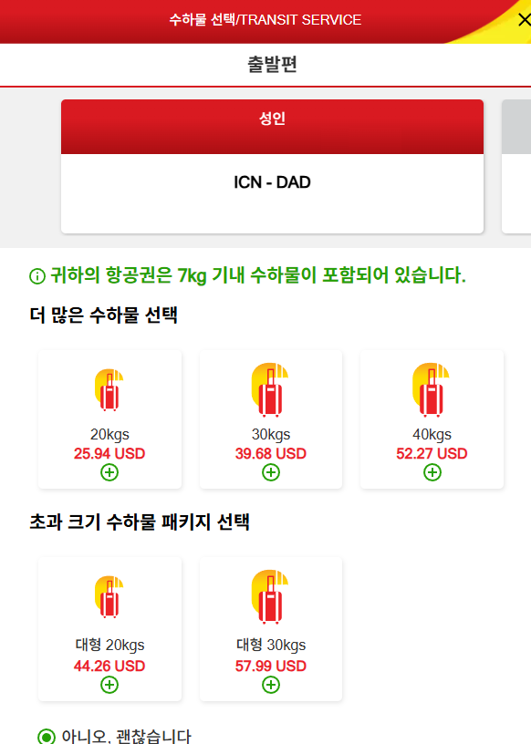 비엣젯 항공 수화물 추가 결제 하기 with 아고다 예약