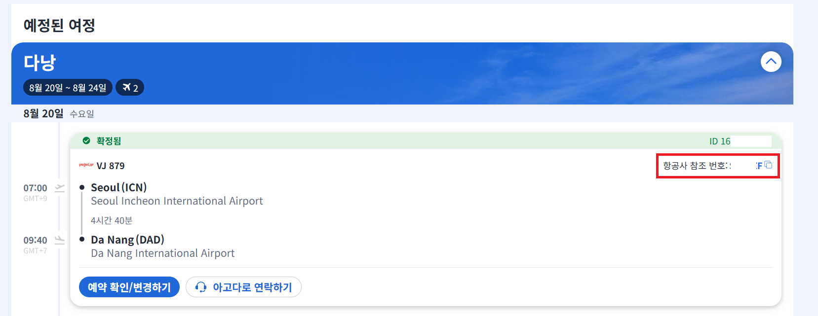 아고다 예약에 오른쪽에 보면 항공사 참고 번호가 있다 이걸 입력 하면 나온다.