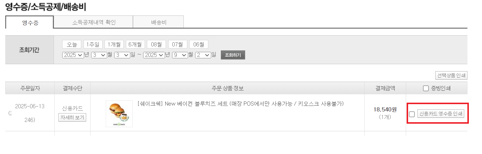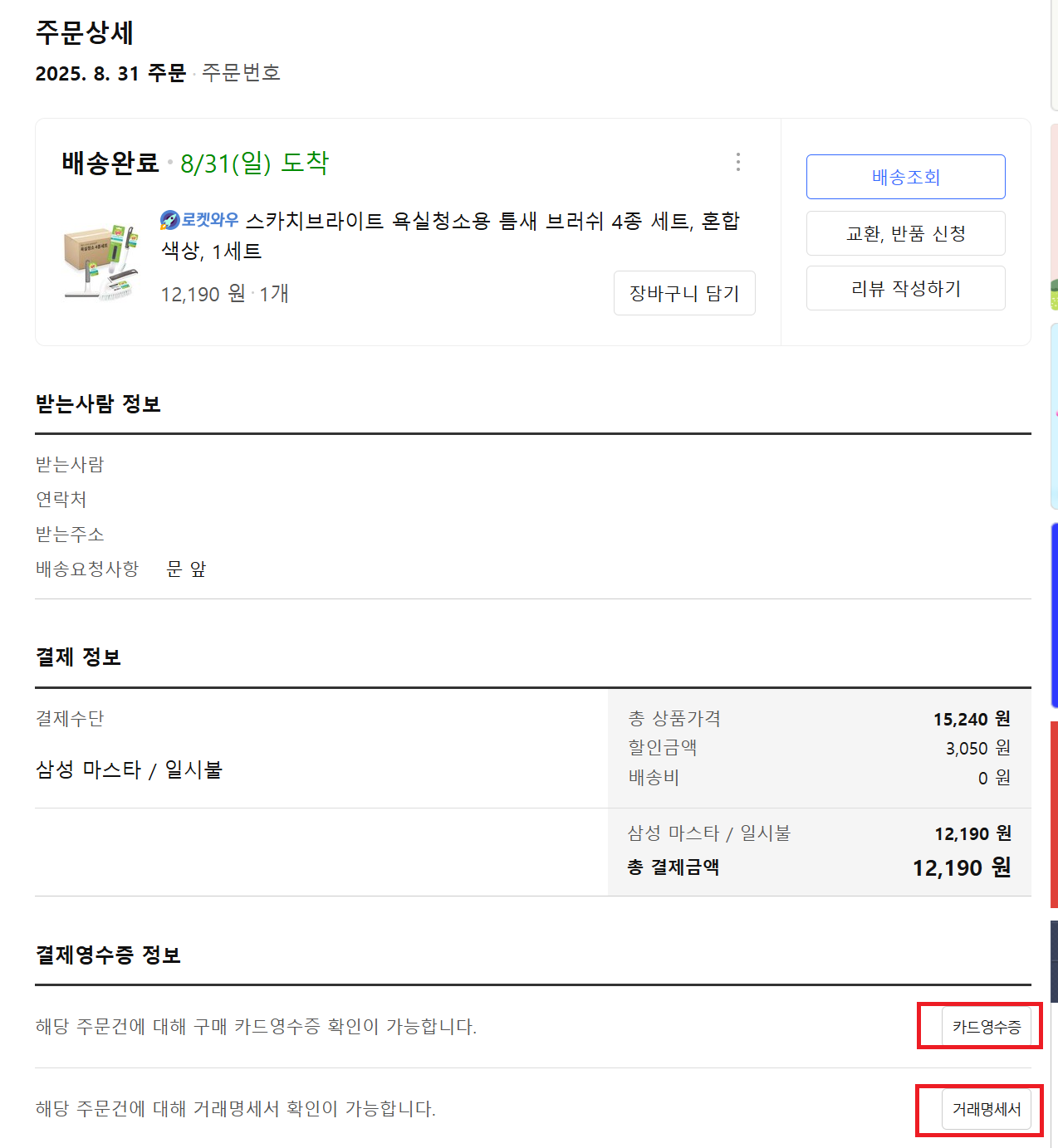 쿠팡도 주문 상세정보에 들어가면 카드전표와 거래명세서가 바로 확인이 가능하다.